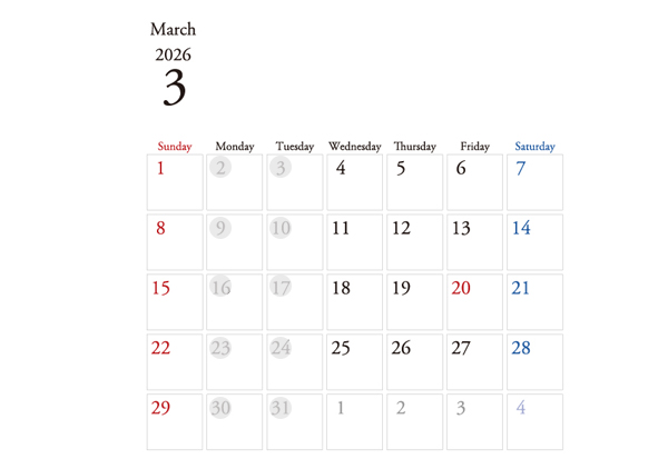 2026.2.28 ーecouter3月のお休みー 日頃よりecouterをご利用頂きまして、誠にありがとうございます。 3月は2、3、9、10、16、17、23、24、30、31が定休日になっております。 ご予約の際はお気をつけください。 今月もエクテをご愛顧賜りますようどうぞよろしくお願い申し上げます。