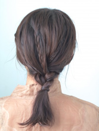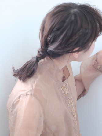 いつもの一つ結びにところどころ細い三つ編みをしのばせた かんたんにちょっとスパイスのあるヘアアレンジ. 全体はゆるっとのむすんで強弱を出すのがかわいくなるポイント♪