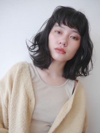 重みのあるロブに外ハネカールの軽い動きをプラスすることで女性らしいアンニュイな雰囲気に◎ゆるりとしたウェーブと軽い束感を出す事でこなれ感がupします。
