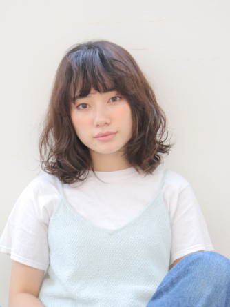 伸ばしかけにミディアムスタイルはパーマかけて動きのあるスタイルに.. ベースは重めにカットして質感調整で軽くしています。 ほわほわとしたやわらかいウェーブに束感をプラスして大人な甘さを♩. 春はかわいらしさをを手に入れましょー!!