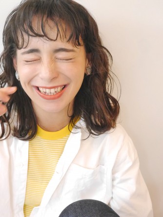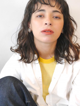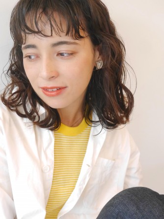 重ためのシルエットの中に、前髪と顔まわりのほつれたような束感で軽さを出したシルエットが特徴のスタイルです。外国人のようなくせ毛風のパーマが抜け感を出してくれます。