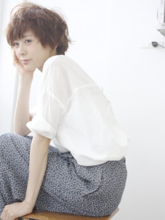 毛先を軽さと動きをつけることでマッシュスタイルもなじみやすく 挑戦しやすいナチュラルエアリーショート♪ 直毛の人も似合わせカットとアンニュイなくせ毛風パーマで柔らかく無造作な質感に。