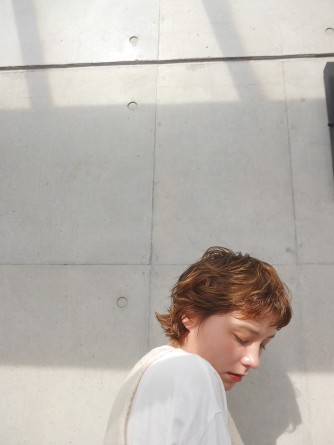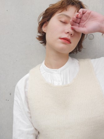 伸ばしかけのショートも動きを出したり明るめのカラーにすることで抜け感を。明るいカラーにはセミウェットな質感がおすすめです◎